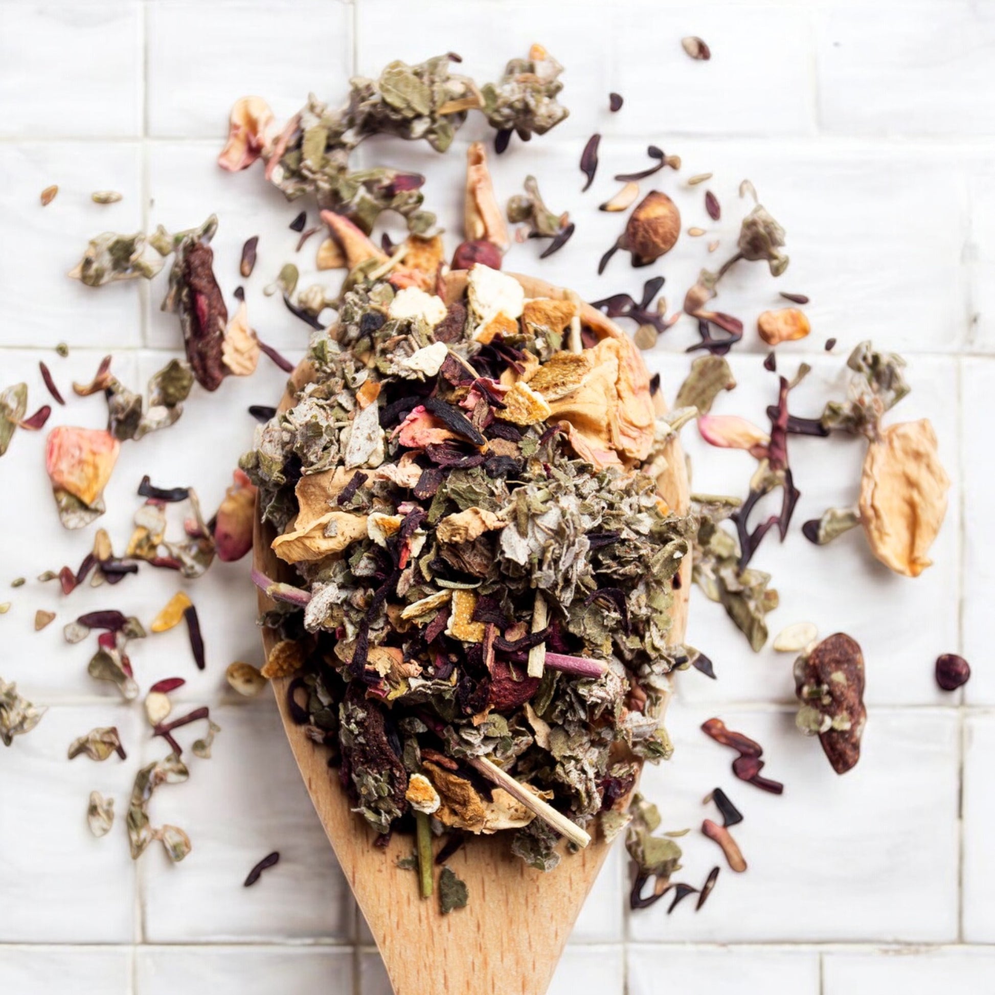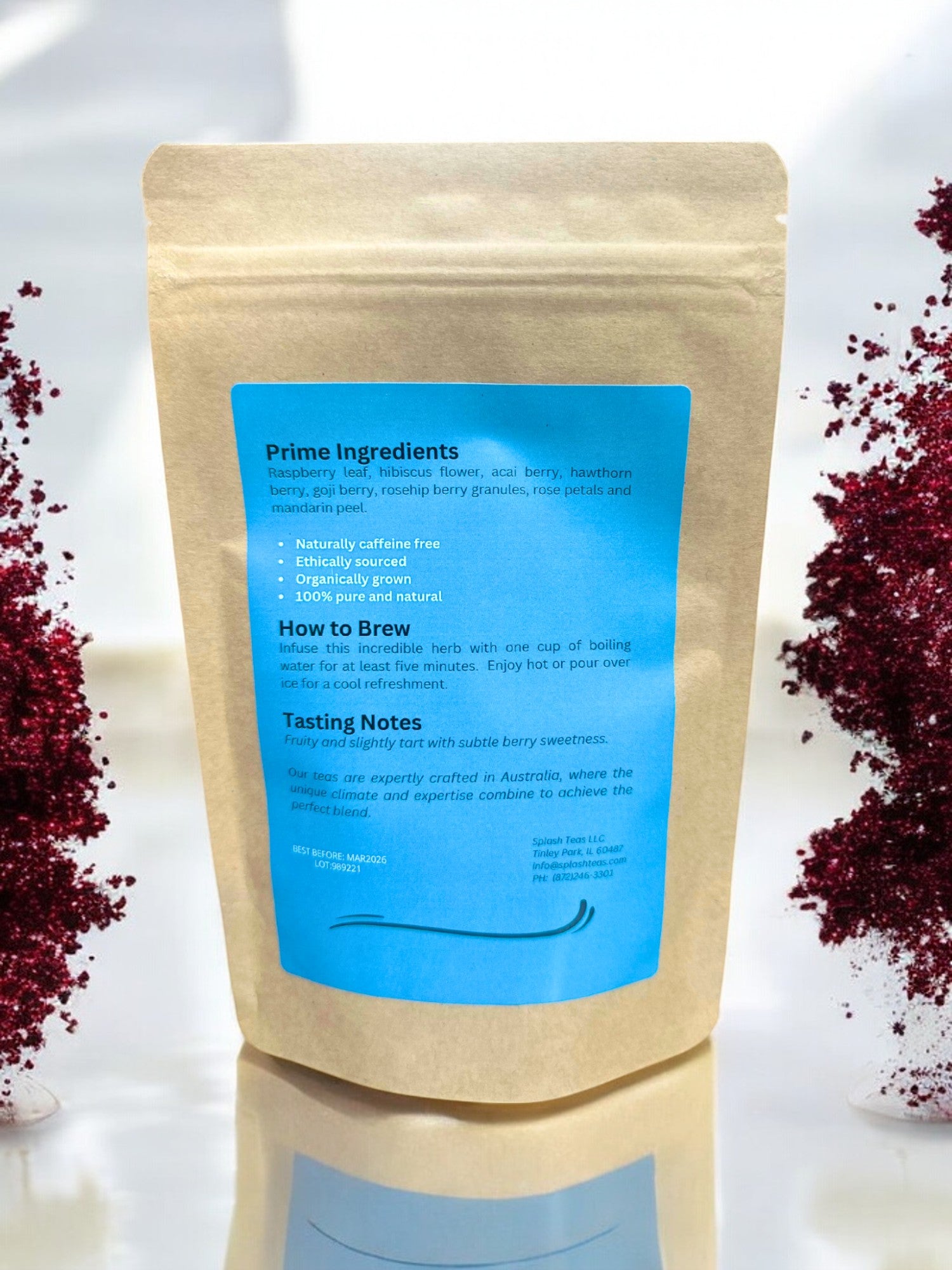 This acai berry tea blend elevates your mind with a vibrant blend crafted to invigorate and enhance mental clarity. This delightful infusion combines the tartness of raspberry leaf and hibiscus flower with the nutrient-rich goodness of acai, hawthorn, and goji berries, delivering a burst of antioxidants. The delicate sweetness of rosehip granules and the floral essence of rose petals are beautifully complemented by zesty mandarin peel, creating a balanced flavor profile. Savor this refreshing tea to sharpen your focus, uplift your spirits, and empower your day with renewed energy and clarity.